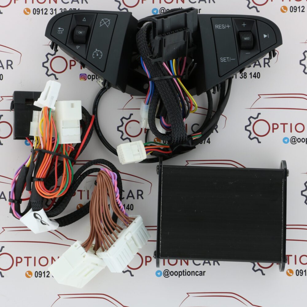 پک کروز کنترل شامل دسته سیم ، سیم پدال گاز ، برد الکترونیکی و کلیدهای روی فرمان می باشد که همه ی موارد به صورت فابریک می باشد و در زمان نصب مشکلی برای سیم کشی خودرو به وجود نمی آورد.