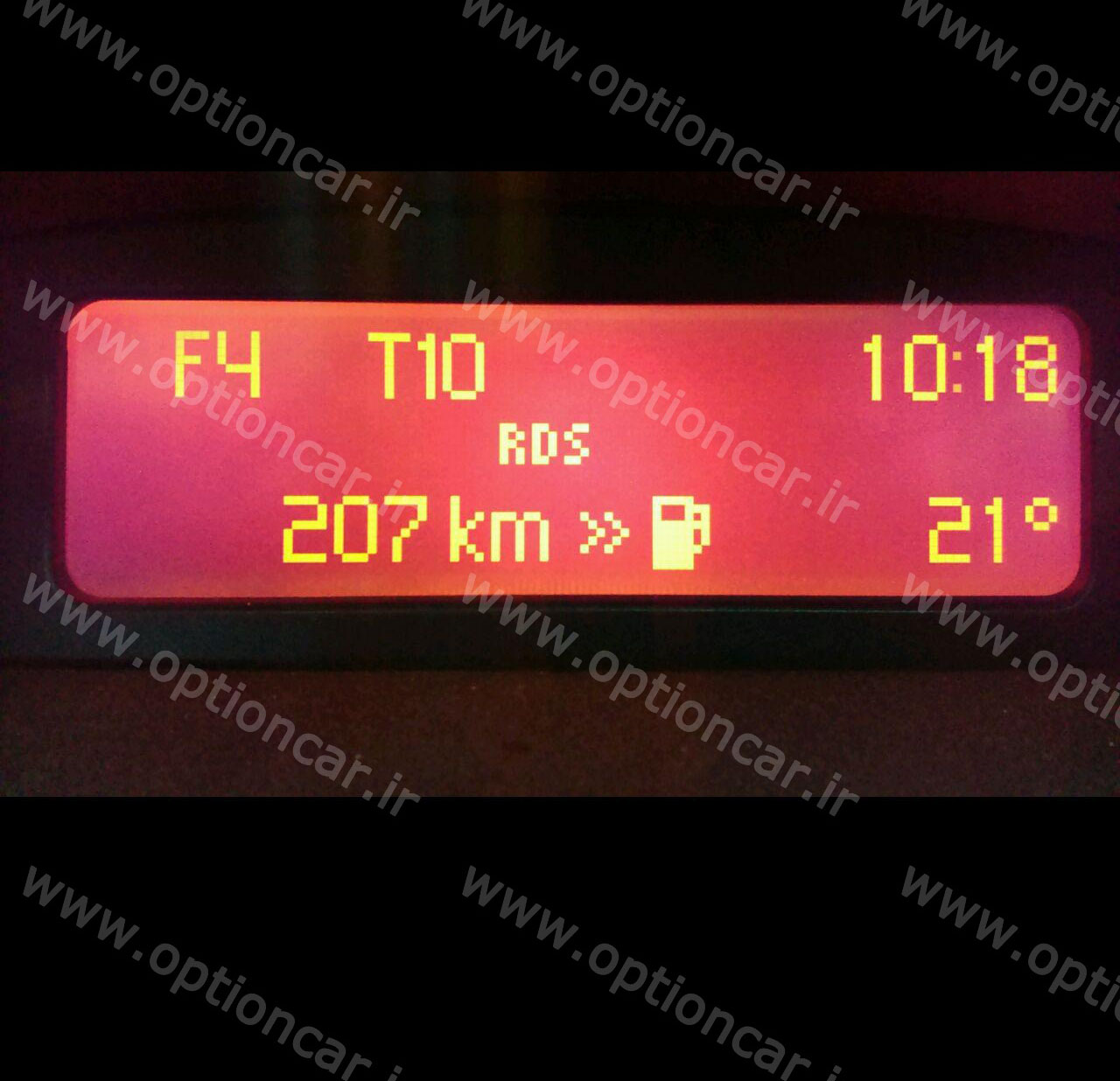صفحه نمایش ساعت تایپ B پژو 206 اطلاعات زیر را نمایش میدهد:
